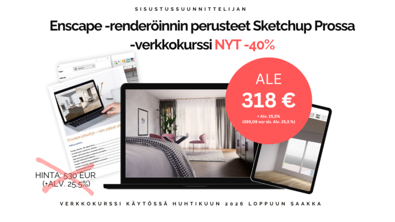 Enscape -perusteet verkkokurssit sisustussuunnittelijalle NYT KAIKKI -40%!
